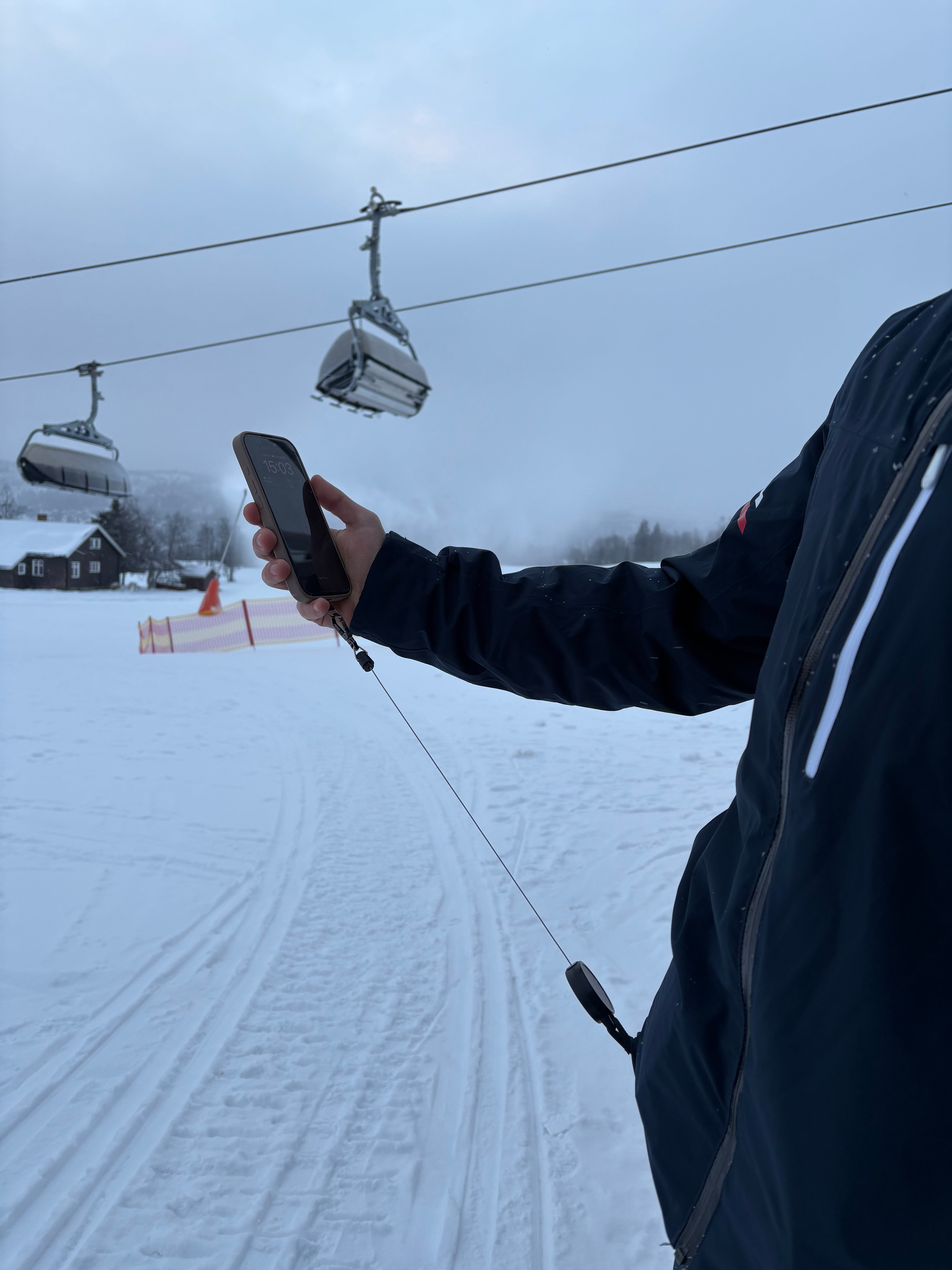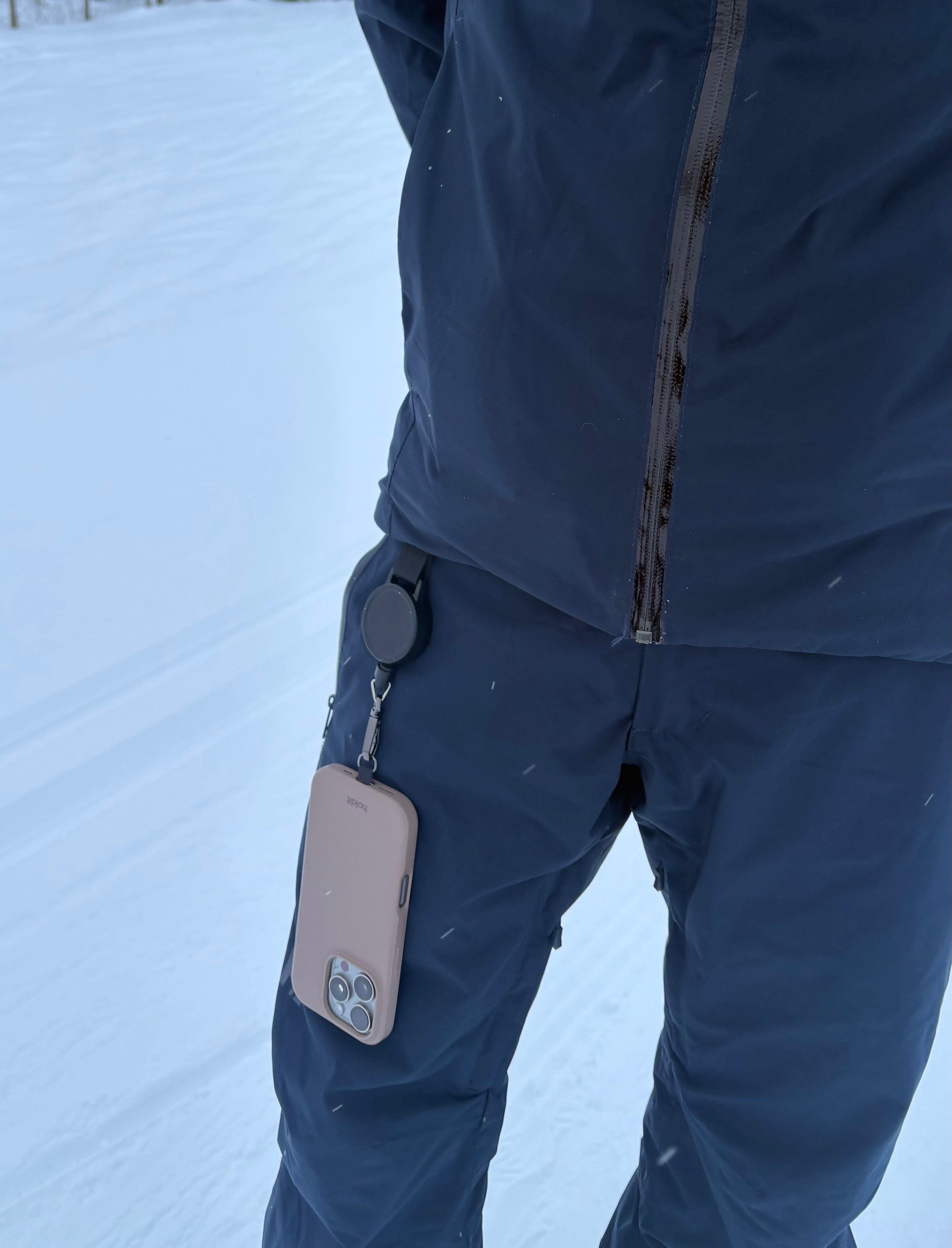 Ha telefonen säkrad - i både backen och liften. Fäst enkelt snodden i mobilskalet och klämman i skidbyxan eller väskan. Därefter väntar ett fartfyllt äventyr utan onödiga hinder.